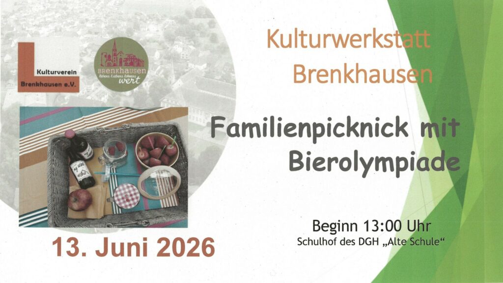 Gemütliches Familienpicknick in entspannter Atmosphäre auf dem Schulhof des Dorfgemeinschaftshauses. Jeder bringt Essen mit. Gelegenheit zum lockeren Austausch zur Stärkung der Dorfgemeinschaft. Tische, Bänke und Spiele, Bratwurst und Kuchen sind vorhanden.